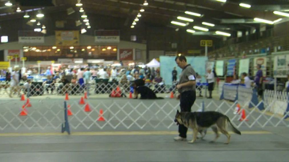 Bindi and I showed today at the AKC Obedience Trials in Texarkana, AR. in Novice A class. We scored an 186 1/2 out of 200 points for a 2nd place and our 1st leg (qualifying score) in Novice A. We need 3 legs for the AKC title of CD (Companion Dog). This was the best heeling we have ever done in competition.
